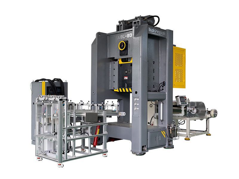 80T punching machine provides large room for operation, which is convenient for fast installation and setting of moulds. The close height is adjustable. With 12 independent pressure adjusted solenoid valves for perfect installation and adjustment of moulds, it is also equipped with 6 additional pressure vessels to achieve ideal pneumatic distribution. All Operators need to do is set packing requirements (number of stacks) by touching the screen and collect stacks of products that have already been stacked at the end of the production line.